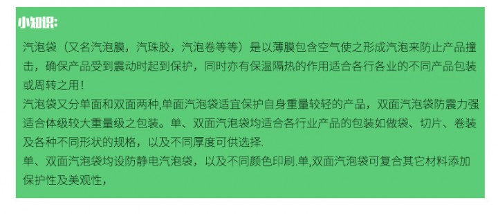 氣泡袋大(dà)小規格可(kě)定做,厚度(dù)可定做,氣(qì)泡袋可做(zuo)單層也可(kě)做雙層,可(ke)以免費打(dǎ)樣。